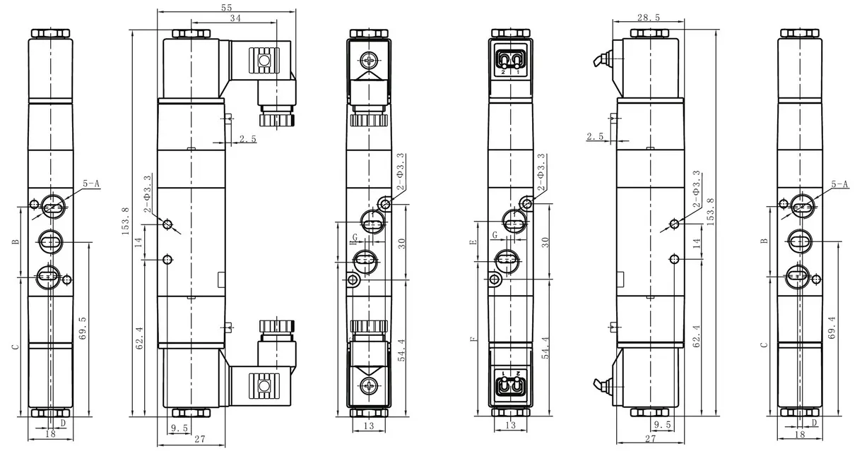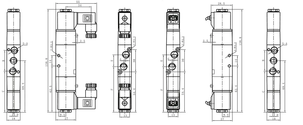 With solenoid operated for control appropriate flow and direction, provide great performance. Stury body have a long lifespan, perfect for electrically driven pneumatic power control. Two Coil 3 position solenoid valve.