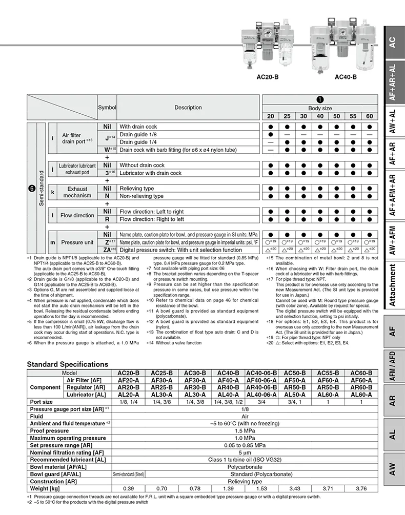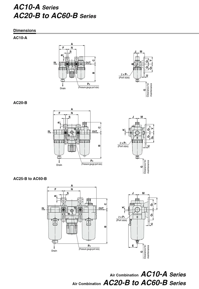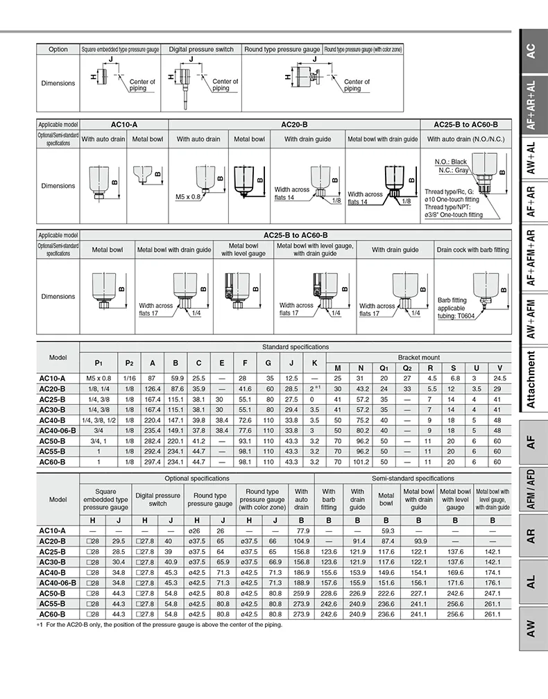AC series air combination Air filter+Regulator +LubricatorHigh quality aluminum alloy valve body5mm fiber filter cartridge for efficient filtration accuracy is 1/16 of a hair's length• precision thread • high-quality seal • high strength material long lifespanUsage:1.pull out the pressure regulator cap. 2.rotate to adjust the pressure. 3.press and lock the pressure