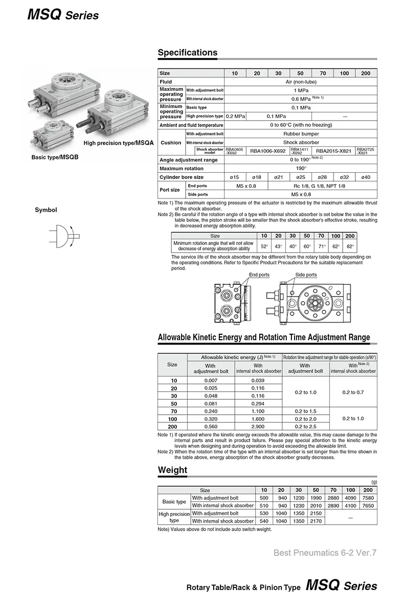 MSQ series rotary cylinder no leakage!High precision ball bearing not lagging!0~190° adjustable the bolt protruding from one end of the cylinder is the adjusting screw.Three layer cylinder body anti-oxidation no rust!Multiple installation holes easy to install.