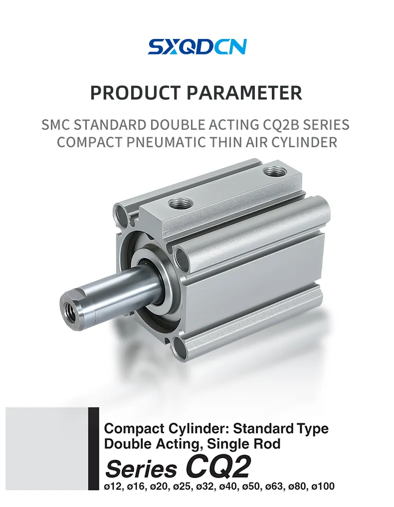 CDQ2B series compact air cylinder no leakage!Smooth expansion and contraction not lagging!Smooth and wear-resistant surface with strong sealing performance, ensuring smooth and unobstructed piston rodThree layer cylinder body anti-oxidation no rust!Four mounting holes easy to install