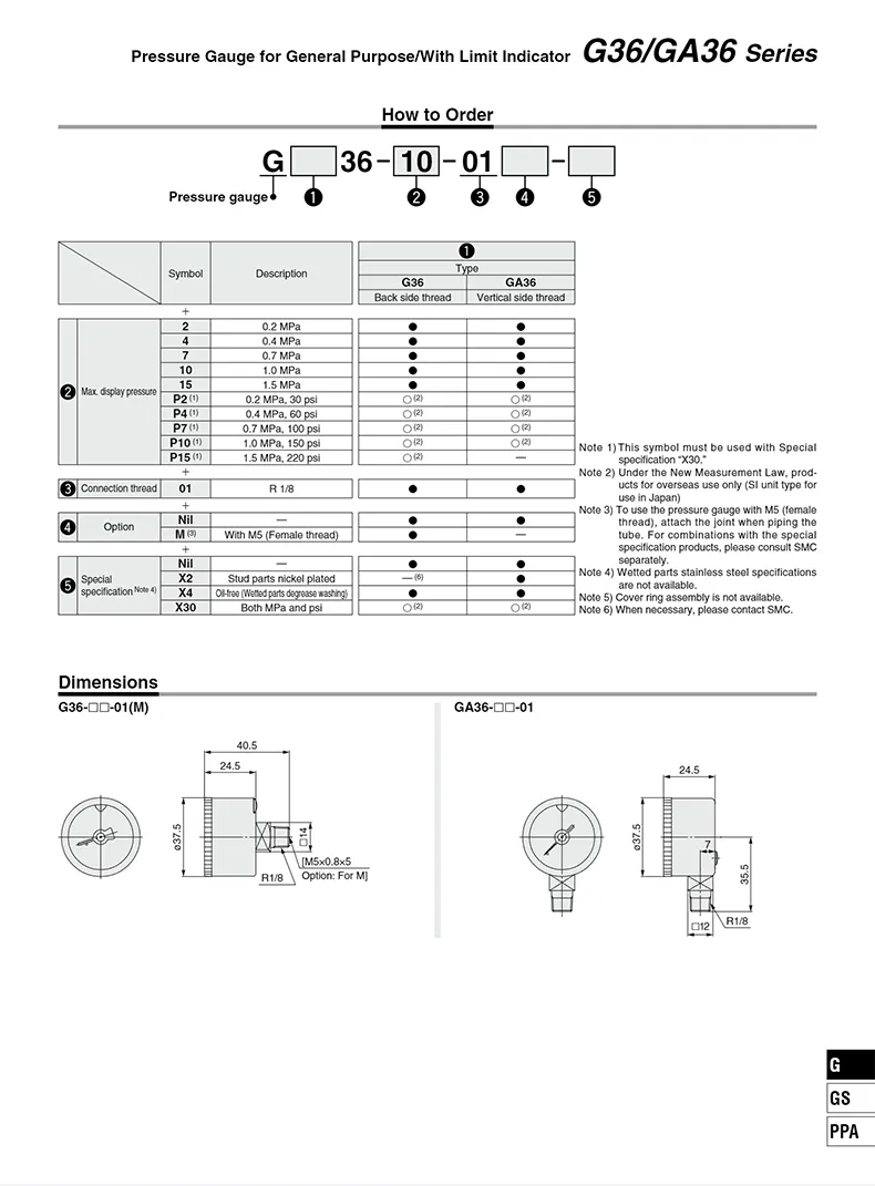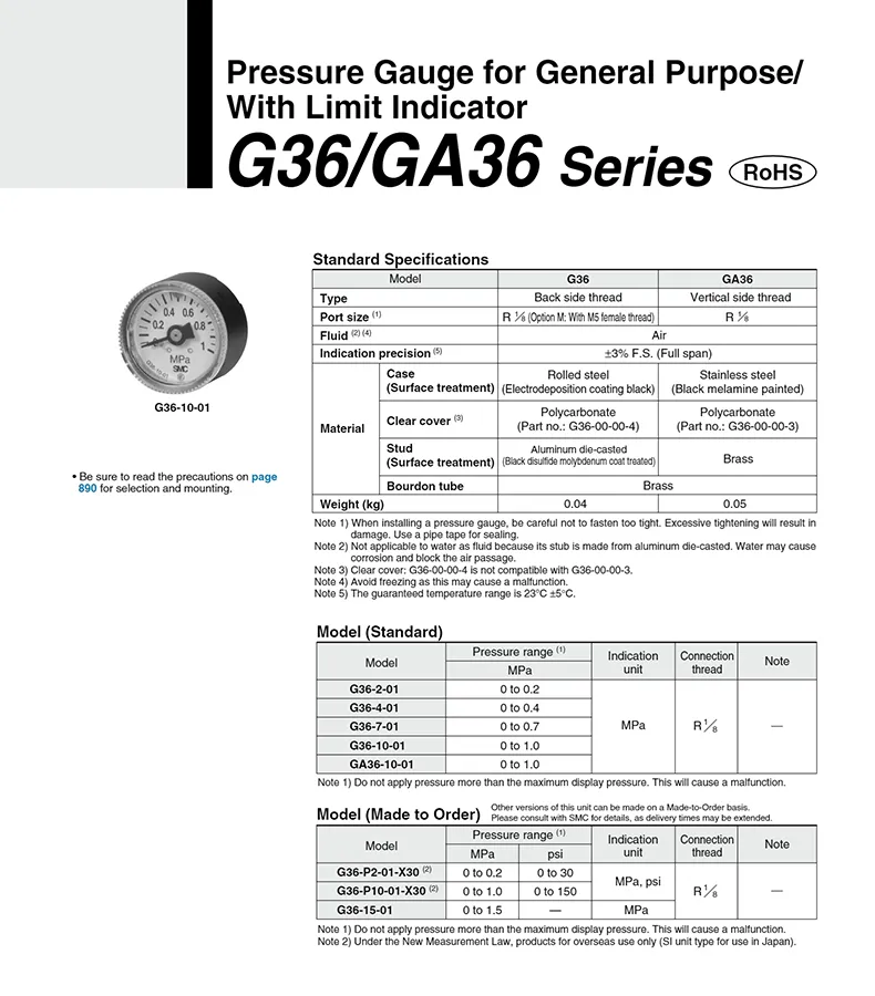 G36 series pressure gauge with limit indicator high precision!High precision pressure measurementBack side thread type High precisionPrecision scale 1mpa=10bar=9.8kg= 142.2psi=1000kpa