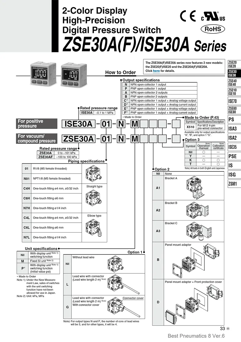 ISE/ZSE series pneumatic digital display pressure switch high precision!Built-in pressure gauge clear and accurate reading distribution direction is optionalTight threads seal is reliable high precision!High-definition LCD display accurate pressure measurement!