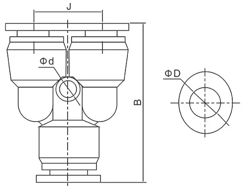PY series three-way quick connect pipe pneumatic fitting360°rotation strong sealing performanceEasy to adjust with tight connectionStrict selection of materials precision machiningThe main body is made of high-strength plastic, with a smooth surface and wear resistance, long lifeHigh quality sealing ring high pressure resistance non-leakage and non-tripBuilt-in stainless steel circlip locking pipe quick plug and installation easy disassemble and easy to pull out